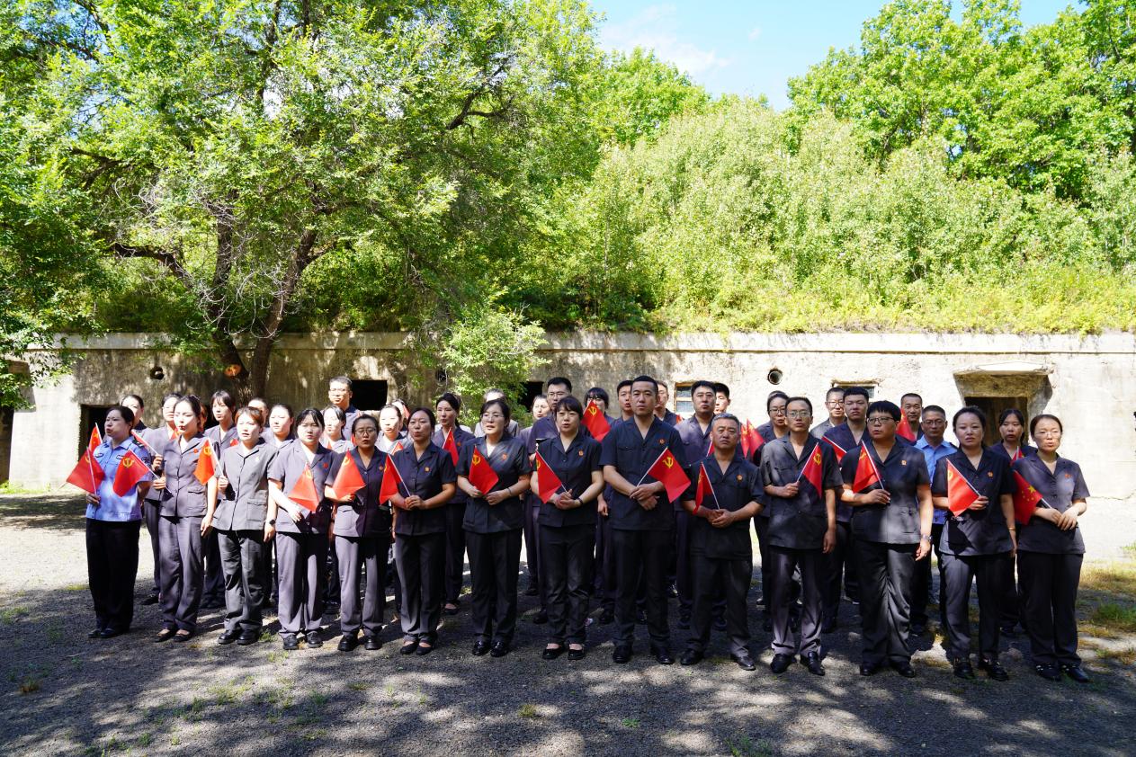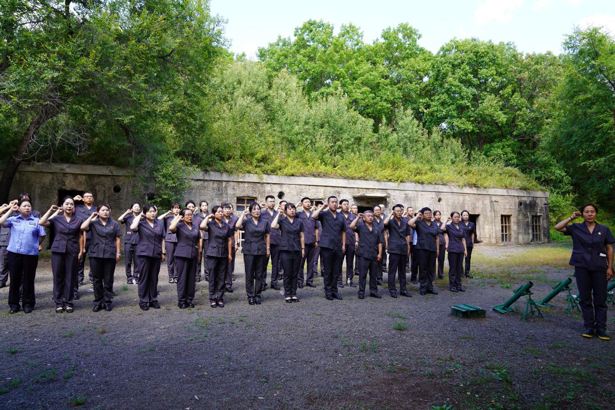 活动中,两院党员干警首先来到孙吴县胜山要塞。循着历史的足迹,大家通过残存的工事遗迹、实物展品及文字介绍,直观感受当年抗日军民抵御外侮的艰辛历程。随后,伴随着激昂的旋律,全体党员共同唱响《没有共产党就没有新中国》,嘹亮的歌声回荡山间,凝聚起砥砺前行的信念力量;紧接着,干警们在要塞前整齐列队,高举右拳庄严宣誓,重温入党时的坚定承诺。之后,大家还前往孙吴日本侵华罪证陈列馆参观,一张张泛黄的照片、一件件饱含沧桑的文物,无声诉说着那段屈辱与抗争的岁月,让在场人员深刻体会到和平的珍贵。