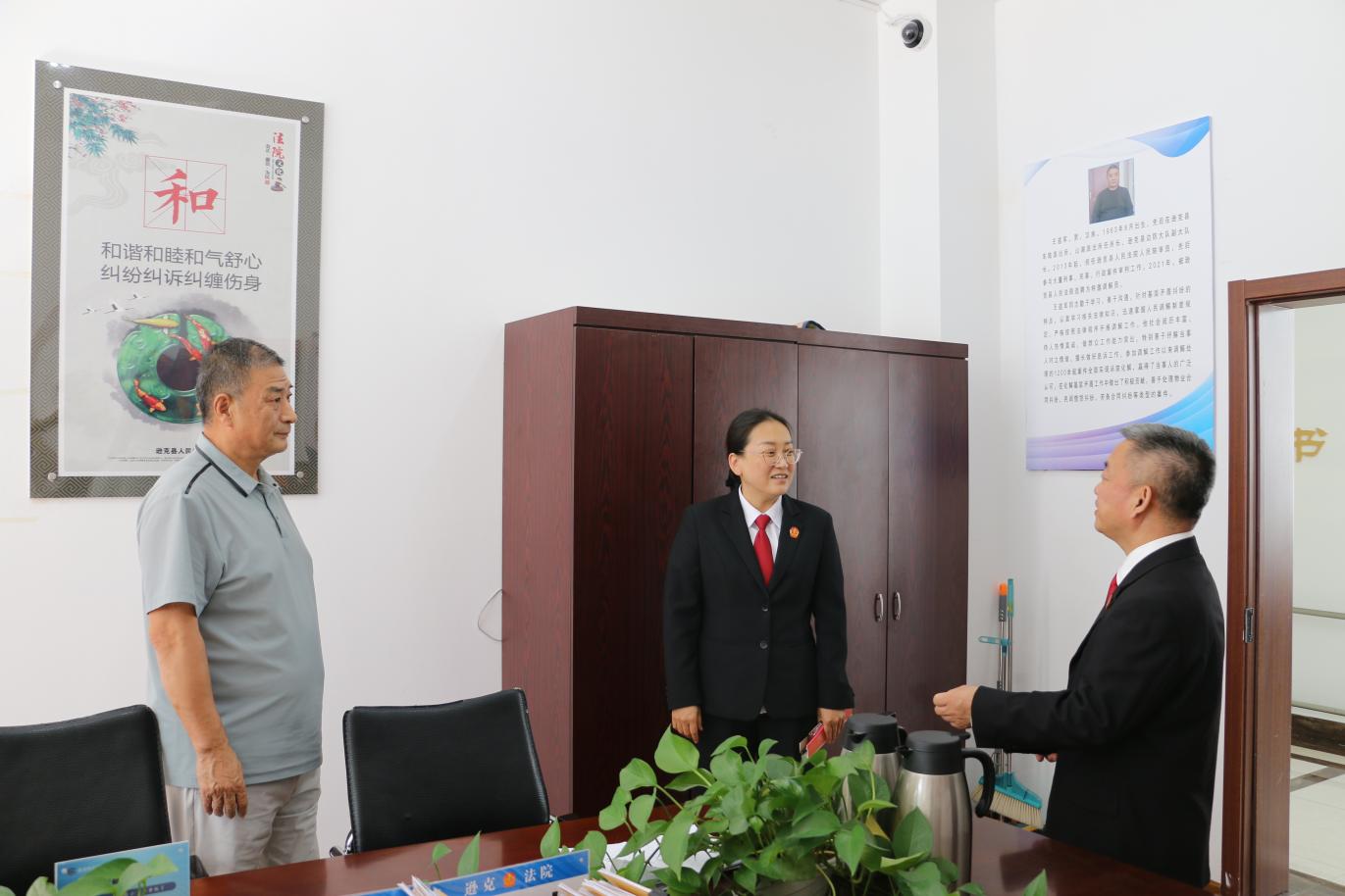 曲畅先后到诉讼服务中心、“老法”调解驿站、智慧庭审法庭实地了解案件办理流程、案件监管方式,并与逊克县法院审判管理工作领导及相关工作人员进行了座谈交流。