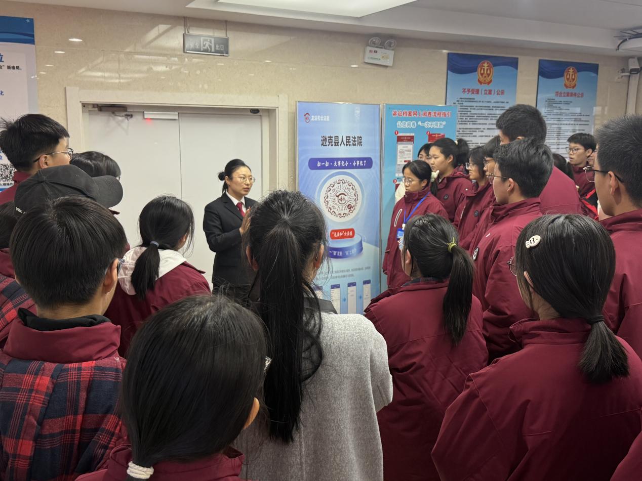 活动中,在讲解员的带领下,同学们有序参观了安检大厅、诉讼服务中心、审判庭等场所。在诉讼服务中心,工作人员详细介绍了立案流程、诉讼服务设施的功能等,让同学们了解到法院如何为群众提供便捷高效的司法服务,感受到司法工作与群众生活的紧密联系。