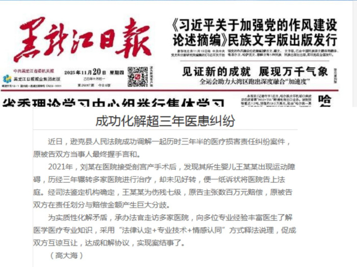 【媒体聚焦】 《黑龙江日报》:成功化解超三年医患纠纷