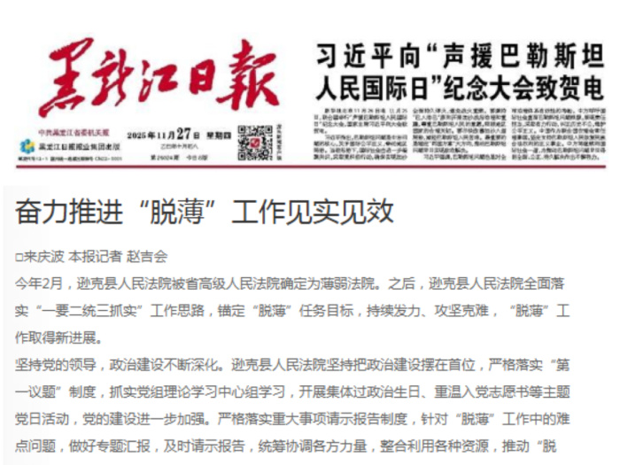 今年2月,逊克县人民法院被省高级人民法院确定为薄弱法院。之后,逊克县人民法院全面落实“一要二统三抓实”工作思路,锚定“脱薄”任务目标,持续发力、攻坚克难,“脱薄”工作取得新进展。