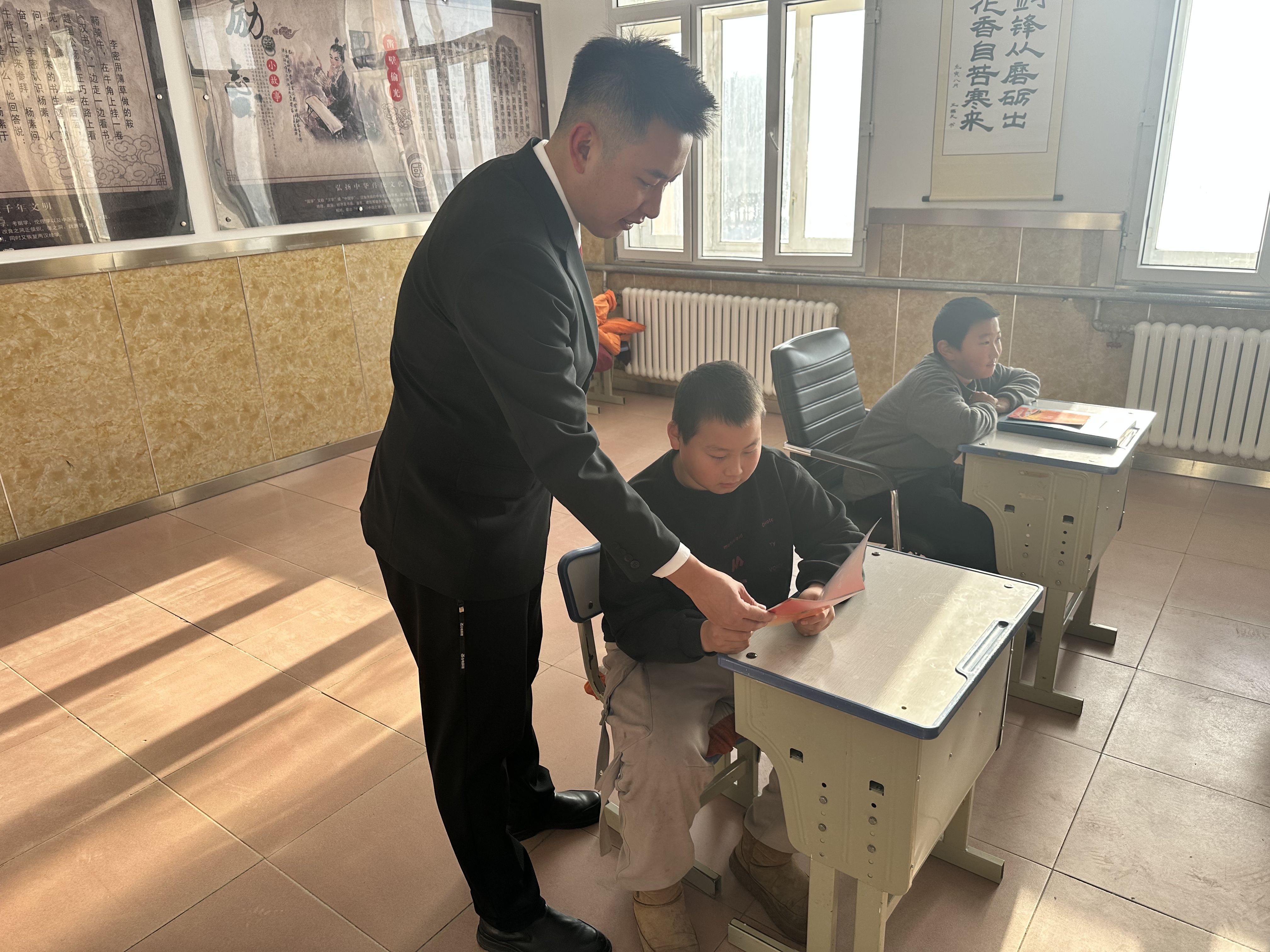 上午9时,车陆法庭的干警们带着精心准备的宪法宣传手册、普法小礼品来到宝山乡中心校。课堂上,车陆法庭负责人顾舒鹏以“宪法是什么”为切入点,用通俗易懂的语言和贴近校园生活的案例,向同学们讲解宪法的基本概念、重要地位以及与未成年人相关的法律知识。“宪法规定了我们享有哪些权利呀?”“遇到校园欺凌该怎么办?”互动问答环节中,同学们踊跃举手、积极抢答,现场气氛十分热烈。 干警们还通过趣味宪法问答,让孩子们在轻松愉快的氛围中加深对宪法的理解,引导他们从小树立宪法意识,学会用法律武器保护自己。活动最后,干警们向师生们发放了宪法宣传资料,鼓励大家认真学习宪法,做知法、懂法、守法的好学生、好公民。