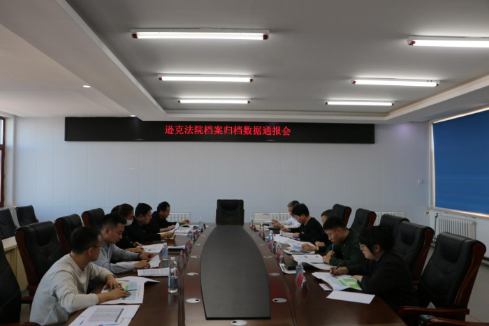 为切实提升审判质效,强化案件流程管理。近日,逊克县人民法院召开档案归档数据通报会议,院领导、各部门负责人参加会议,会上围绕卷宗归档进度及案件统计工作展开深入部署。