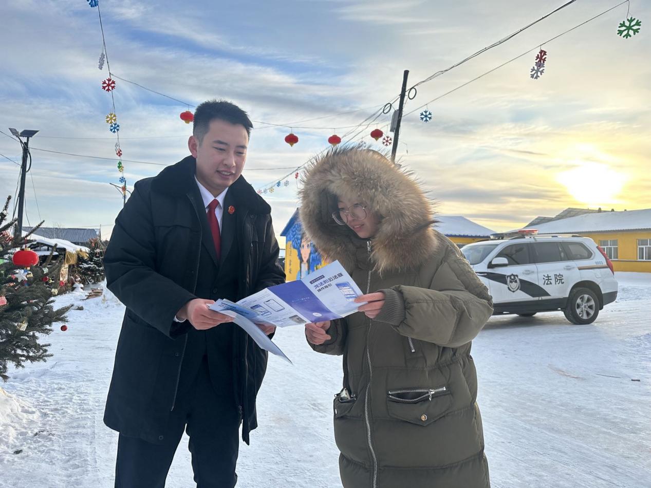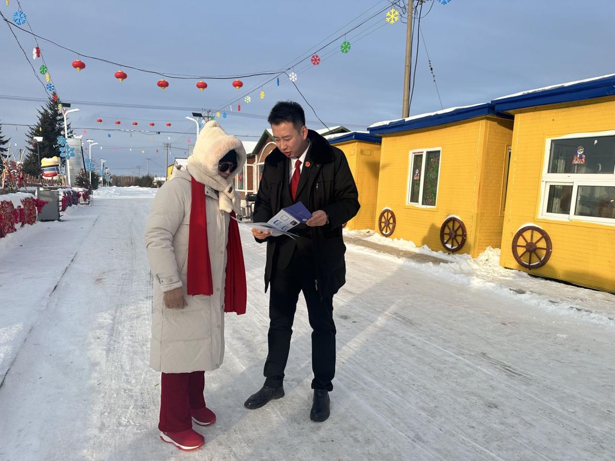 银装素裹的克林镇大平台村古纳温雾凇景区,雾凇奇景吸引着八方游客,冬日“热经济”持续升温。为让法治护航与冰雪盛景同行,近日,车陆法庭主动延伸司法职能,组织干警走进景区开展“司法护航冰雪经济”主题普法宣传活动,以专业法律服务为辖区冰雪旅游产业高质量发展筑牢法治根基。
