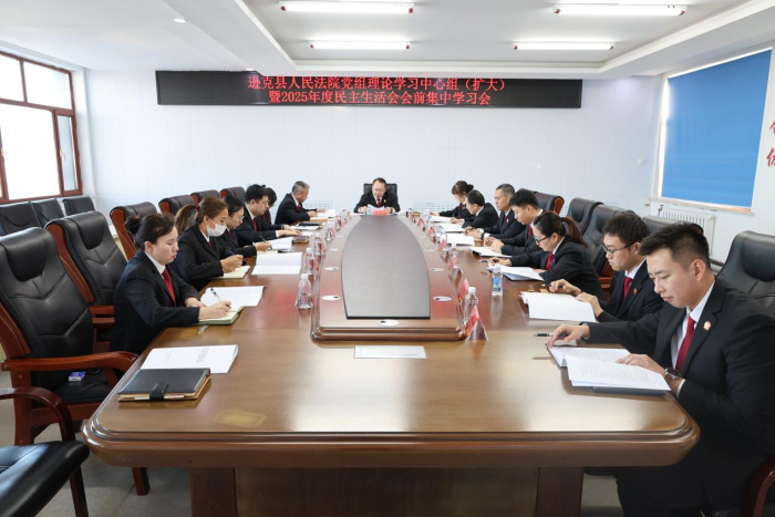 1月14日,逊克县人民法院召开党组理论学习中心组(扩大)暨2025年度民主生活会会前集中学习会,院党组书记、院长关志峰主持会议,班子成员、专职审委和部门负责人参加会议。