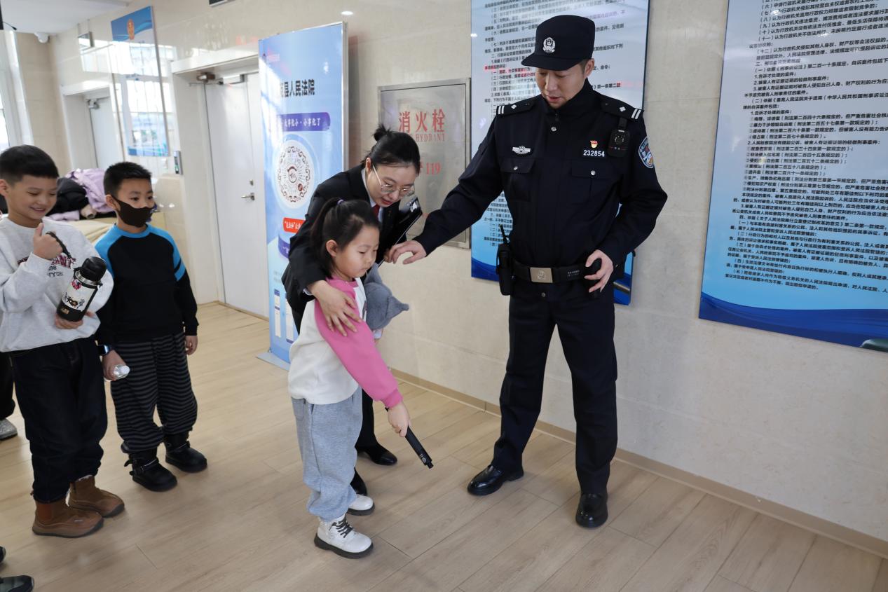 “这里就是守护公平正义的地方。”讲解员姐姐用亲切的语言,为孩子们介绍了法院的功能、国徽的构成与意义,以及“努力让人民群众在每一个司法案件中感受到公平正义”的深刻内涵。