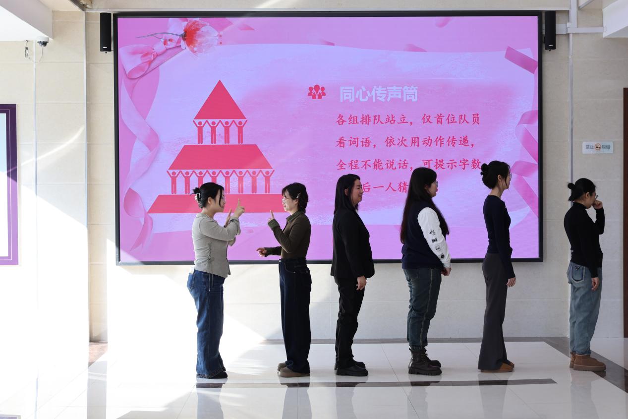 活动以“团结”为魂,紧扣“北疆法韵·法砺同心”品牌内涵,精心设置拔河、同心传声筒、聚力连珠三项趣味游戏,将团队协作、文化浸润与节日欢乐融为一体,让团结精神在欢声笑语中充分彰显。拔河赛场上,女干警们紧握绳索、齐心协力,口号铿锵、步伐一致,以同心同向、并肩拼搏的姿态,生动诠释“法砺同心”的团结内核,现场加油声、欢呼声此起彼伏,气氛热烈高涨。同心传声筒环节中,大家凝神倾听、默契传递,在精准衔接、无缝配合中感受同心同行的力量,欢声笑语间尽显法院巾帼的团结与灵动。聚力连珠游戏里,干警们凝心聚力、高效协作,以默契配合完成挑战,把“团结一心、其利断金”的信念融入每一个动作,让“北疆法韵·法砺同心”的团结底色愈发鲜明。